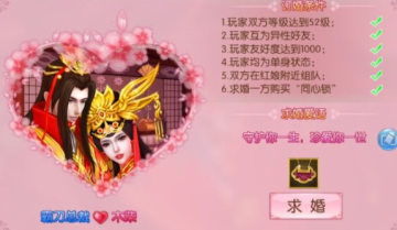 祝福:可多次赠送。分别为新婚祝福(10金币)、玫瑰祝福(200金币)、浪漫烟花(99元宝)、永结同心(520元宝)。