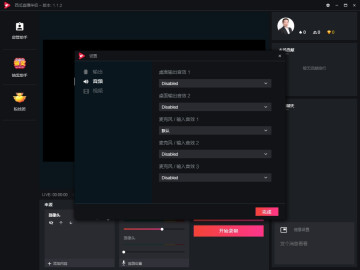 西瓜直播伴侣高级设置里的音频设置可以添加两路输出音频设备以及三路音频输入设备作为直播时的声音源。
