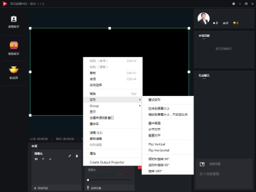 西瓜直播伴侣可以在视频预览区域点击鼠标右键进行变形设置,可以拉伸、缩放、对齐、旋转视频窗口。