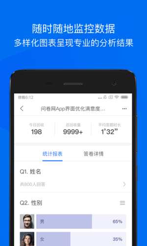 1.操作简单易上手:方便用户充分利用碎片化时间,随时随地进行编辑、收集、查看问卷。