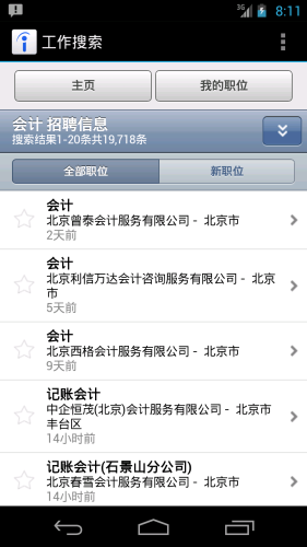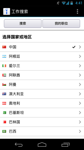 - 简单,迅速的搜索某一地区的所有工作职位;