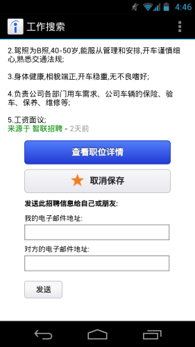 - 可通过招聘提醒邮件直接打开App查看工作详情;