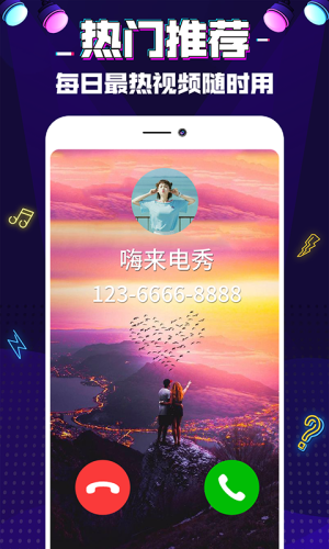 来电秀嗨来电下载,让小伙伴们可以尽情在来电秀嗨秀来电,秀出你的与众不同独特魅力,来电秀嗨app内容丰富多元,用户可以随心设置来电,感兴趣就来下载!