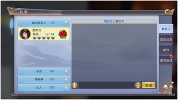 玩家可通过好友界面添加仙友和删除好友,点击好友可以管理好友,可以和好友私聊交易,发送组队邀请、赠送鲜花等,还可以对好友进行位置追踪。