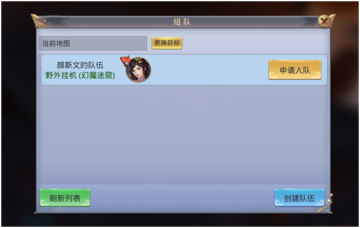 玩家在游戏过程可以组队完成任务和击杀怪物,在组队界面,玩家可以创建队伍,设置自动接收入队请求。玩家可主动加入自己想加入的队伍,也可以自己创建队伍。玩家可在组队内和队友自由交流。