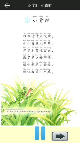 2、提供了每一课生字的拼音、朗读、组词、造句和解释,让学生不在面对枯燥的生字。