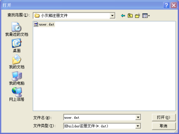 3.在弹出的打开框中打开小灰熊注册文件user.dat(和安装程序在一起)