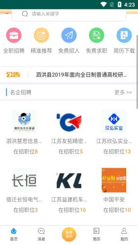 泗洪人才网app,专为泗洪本地打造的招聘平台。提供职位搜索、手机应聘、求职管理等多项服务,为广大人才提供随时随地便捷求职的全新体验。