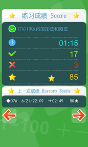 2、“成绩页”右箭头按钮变更为连续答题功能;