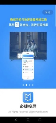 必捷投屏app,安装好后开启悬浮权限,扫码或输入投屏设备的ip地址或投屏码即可将手机中的画面投到设备当中,万能投屏实时同步你手机中的各项操作哦!