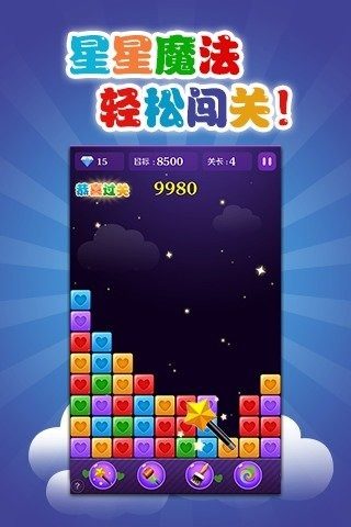 更有增加消除难度的完美消除玩法——萌星解谜,关卡内星星摆放成各种不同的可爱造型,造型虽可爱想要消除却需要玩家开动脑筋