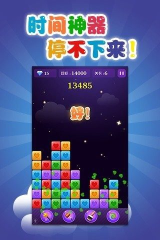 与怀旧之作“俄罗斯方块”相结合的拼接消除玩法——星星连萌,通过拖动方块到棋牌中摆满一行或一列后可消除方块,带玩家找回童年的乐趣