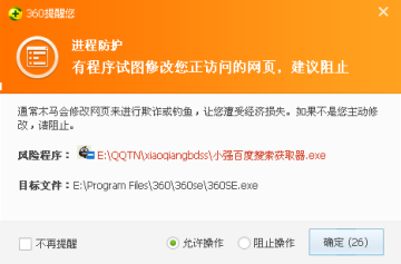 在搜索时,如过安装了360就会显示以下提示,允许即可