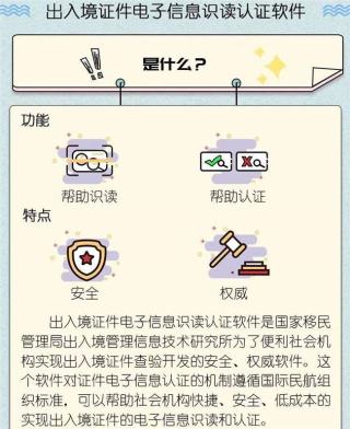 出入境证件电子信息识读认证软件是国家移民管理局出入境管理信息技术研究所为了便利社会机构实现出入境证件查验开发的安全、权威软件。