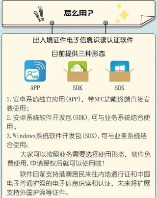 出入境证件电子信息识读认证软件通过手机终端或与现有识读设备结合就可以快速识读并认证出入境证件的电子信息,在宾旅、电信、金融、交通等行业都可以使用。