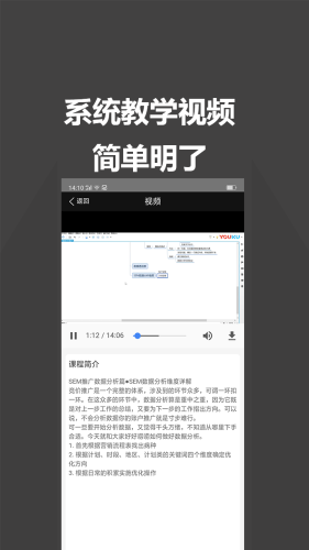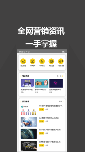 倍盈app,致力于全网营销行业知识的发布,支持网站建设、SEM推广、SEO优化、微信运营以及小程序开发等;其全网营销资讯一手掌握,提供了海量营销教程助你精细化学习,而且系统教学视频更加简单明了。