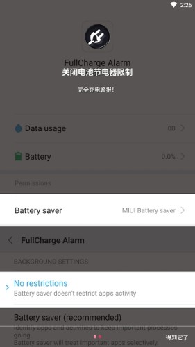 如果您使用任何任务杀手或Ram清洁应用程序,请将此应用程序添加到忽略列表或白名单,否则,电池警报可能无法正常工作;
