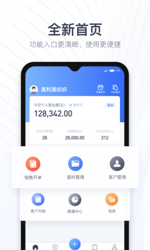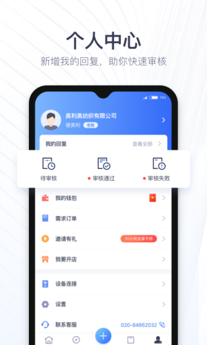布搭档商家app,全新首页,功能入口更清晰、使用更便捷;需求广场,真实采购订单等你来抢;销售开单,手持移动开单,电子码单自动生成;个人中心,新增我的回复,助你快速审核;客户管理,助你持续跟踪采购需求,转化商机。