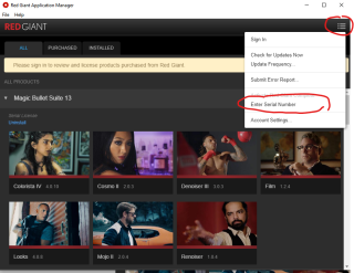 先安装插件程序,最后点击左下角蓝色的Activate,在弹出Red Giant Application Manager中点击Cancel(无需登录),然后点击右上角的按钮,选择Enter Serial Number,依次输入插件序列号完成注册激活。