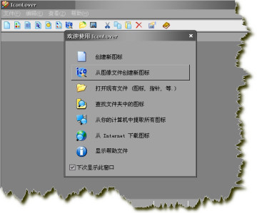 1.打开iconlover,选择“从图像文件创建新图标”,如图