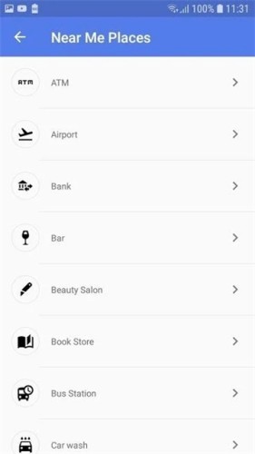 自动取款机,机场,银行,酒吧,美容美发,书店,汽车站,洗车,赌场,Cloting商店,咖啡,牙医,医生,食品,加油站,医院,酒店,图书馆,电影院,博物馆,