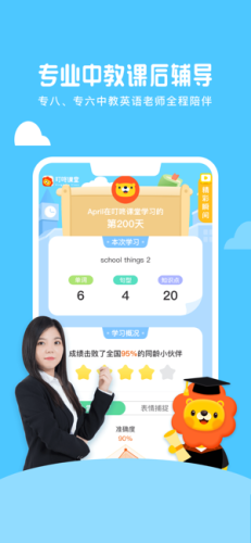 随时随地约课外教老师,多移动端产品覆盖,周期性的评测和学习报告、家长伴读功能,帮助家长轻松掌握儿童英语的学习进度和成绩。
