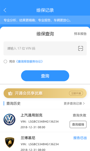 内容涵盖了保养记录、碰撞记录、爱车信息,其他车型介绍、多种内容、详细的领域区分、简便细化的车辆信息查询操作流程。