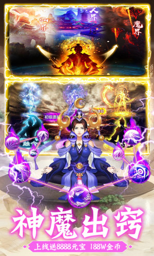 ★上线送8888元宝,188W金币,VIP5,不搞那些假福利,直接就送充值的元宝!!持续登录还能免费升VIP9,简直就是福利手游!