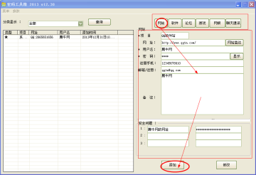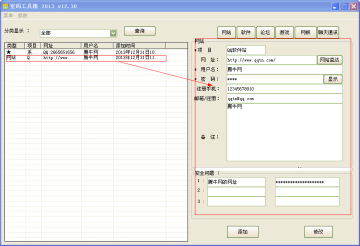 密码工具箱可以记录日常的网站、论坛、软件、通讯录、网银的密码帐号,在添加了密码的同时可设置安全问题,加强密码防范,让我们不必担忧忘记密码。