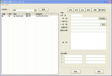 2.登陆密码工具项需输入密码,添加密码项目可设置安全问题加强防范