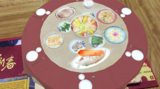 带上VR眼镜,就可以进入虚拟的节日小镇场景,烟花鞭炮、Q萌的小年兽眨眼睛摇着尾巴,通过眼镜视角来到另一边的中国特色建筑边,可以感受贴年画、对联等各种习俗。