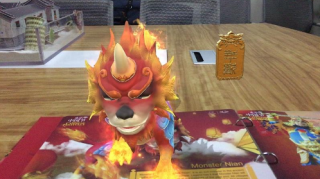 欢乐中国节产品包含AR中国节庆文化卡,AR互动召唤印章,AR互动3D彩绘卡以及“欢乐中国节”专属APP。产品采用实物结合AR增强现实技术,扫描不同的AR卡片,3D年兽、门神、嫦娥、月饼等形象立即鲜活呈现,让使用者在互动游戏中了解中国传统节日文化。产品独有的AVR眼镜将呈现出超真实的节日场景小镇,通过操作互动眼镜,我们可以自由燃放挑选好的各式烟花,体验一场精彩绚烂的烟花秀。