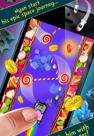 彩虹猫系列了原本是一款 Flash小游戏,精美的像素风 2D 画面与欢快的人物形象给人留下了深刻的印象,配合那首从头到尾都是“Nyan”的喵星人曲子,绝对是喜感十足。如今这只小萌物辗转来到了浩瀚无尽的外太空,这里所充斥的并不是冷冰冰的陨石和死星,而是一颗颗长满美食的星球,可惜的是主角彩虹猫不能大吃特吃,而是要尽量避开它们飞向家园,对于一只馋猫来说美食真的会误事呀,那么接下来就让我们戴上耳机,伴随着只有“喵喵喵”的卖萌配乐开始这段令人难忘的旅程吧。