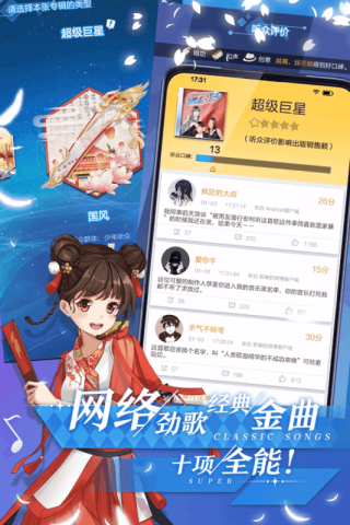 《偶像养成日记》拥有海量的明星艺人资源,靓男美女星光熠熠。既有青枫、馥珍、玲花等乐坛唱将鼎力助阵,更有肖湛、超月、俊楷等娱乐圈顶流明星倾情加盟,花样少男少女,自由搭配组合,组建你的心动天团,不断创造动人音乐,挑战流行天花板,攀登专辑畅销王座。巡演、应援、签售等丰富的互动玩法,粉丝和偶像零距离接触,旖旎心事,皆有可能。