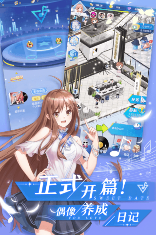 《偶像养成日记》,制作流行大碟,打造最强天团,音乐偶像模拟经营手游。游戏中你可扮演一名经纪公司的经纪人,通过星探募集外形俊美,实力特色各部相同的偶像进行养成,对偶像进行包装养成和不断培养后,打造出最强天团组合,随着公司的不断扩大,不断募集音乐专辑,用专辑验证组合实力,最终创造出无可匹敌的专辑销量奇迹,圆一个成为最强偶像经纪人的梦想。