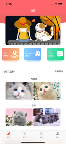 4,社区:是为爱猫人士专门建立的一个社区,方便大家交流养猫宠猫的心得。