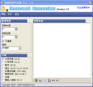 高级密码生成器英文名PassGenerator,可以随机生成密码,你可以设置密码任意长度,密码字符等,支持复制、导出密码清单。