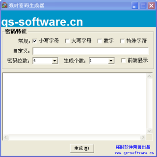 强时密码生成器是一款能够自定义设置密码特征的批量密码随机生成工具,使用强时密码生成器密码位数不得超过20位,密码生成个数一次最多20个。