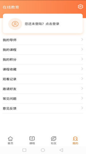 我的:我的导师、我的课程、我的积分、课程收藏、观看记录、邀请好友、常见问题、章见反馈
