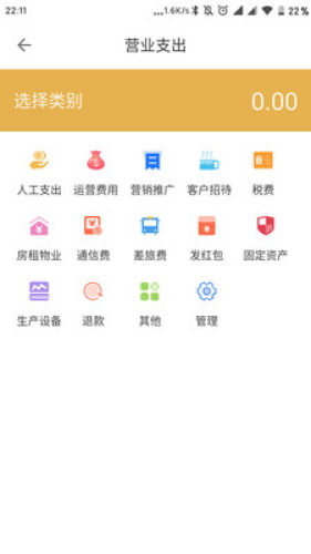 2、然后在默认账本的页面中选择一下类别,其中包括人工支出=、招聘培训、办公费用等;