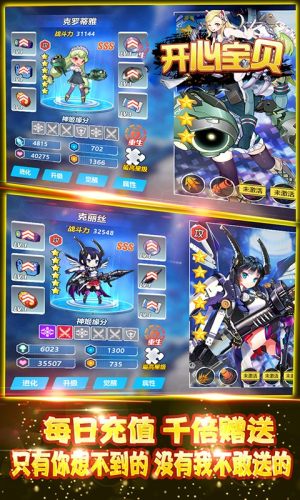 开心宝贝,一款二次元画风卡牌RPG手游。玩家在这里将召集众多少女战姬,各种升级升星等进阶方式任你体验,精美的人物立绘,精彩的休闲喂食互动玩法等你解锁,打造你的最强战姬团队。