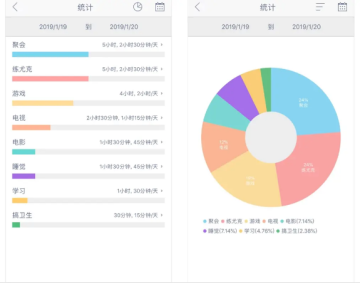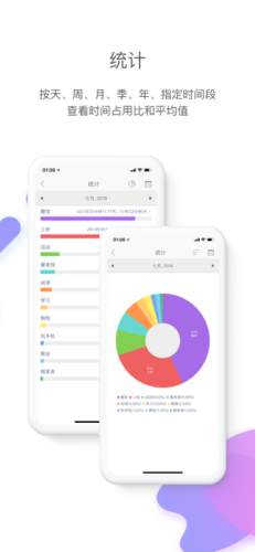 • 强大的统计,以饼图和柱图等多种方式分析时间占用比