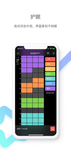 4.人性化:记录精确度默认每个时间块为半小时,适合绝大多数想要快速记录时间的人。当然,设置中可选记录精确度为每个时间块15分钟,适合需要精确记录时间的人。