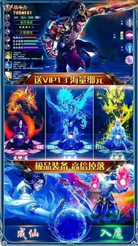 是一款大型3d仙魔风格arpg手游。精致的美术画面通过炫酷3d效果,为玩家呈现了一个人魔大战的历史战场。新版本大优化,价值188元首充白给,vip礼包白给,加入全局跑图+战斗3倍加速、掉落爆率10倍提升改动,并加入无限紫晶、海量元宝玩法,上线更有满级vip13+88888绑元+888万金币,给你超爽体验,畅爽开局。配合精彩玩法供玩家探索,踏上君王之路。全自由化的pk对抗,极致激爽的战斗对决,将最大限度满足你对仙魔手游的所有幻想!