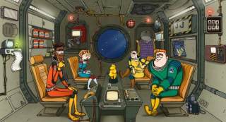 这就是《60 Parsecs!》,一款背景设定在原子太空时代的黑色幽默科幻冒险游戏,其中还有冷战偏执狂、镀铬墙以及戴着太空头盔的蟑螂。