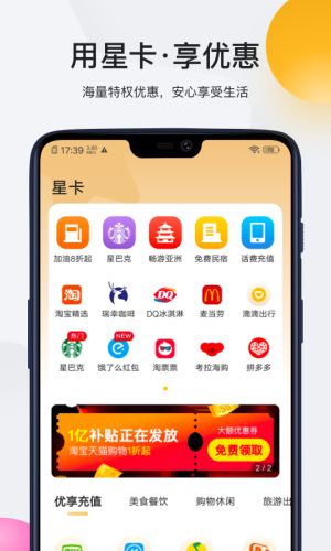 集天猫/淘宝/京东/滴滴/美团/大众点评等折扣权益于一身,