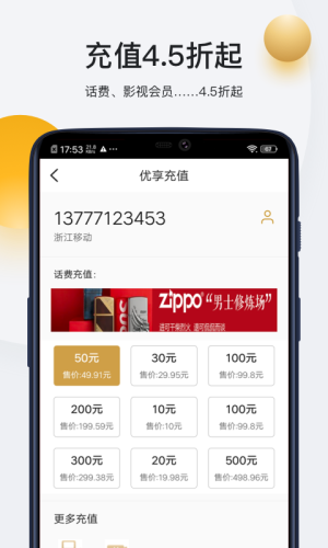 - 充值4.5折起,话费、影视会员...4.5折起;