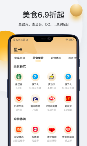 星卡是一款包含了吃喝玩乐等生活特权的APP。