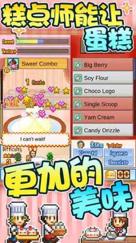 在这款模拟经营类游戏中,玩家将化身为一名西点师开始经营属于自己的蛋糕店,并且通过各种食材搭配出不同口味的蛋糕以赢得群众的喜欢,达到赢得糕点比赛冠军的目的。