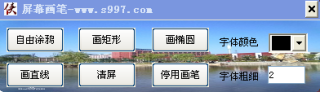 自由涂鸦,画矩形,画椭圆,画直线,清屏,停止画笔,字体颜色,字体粗细